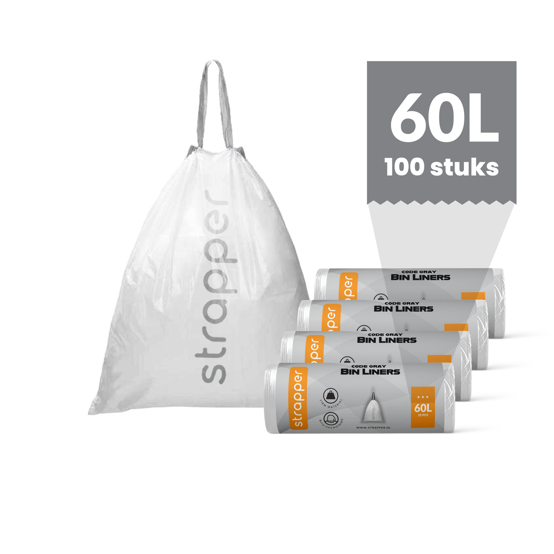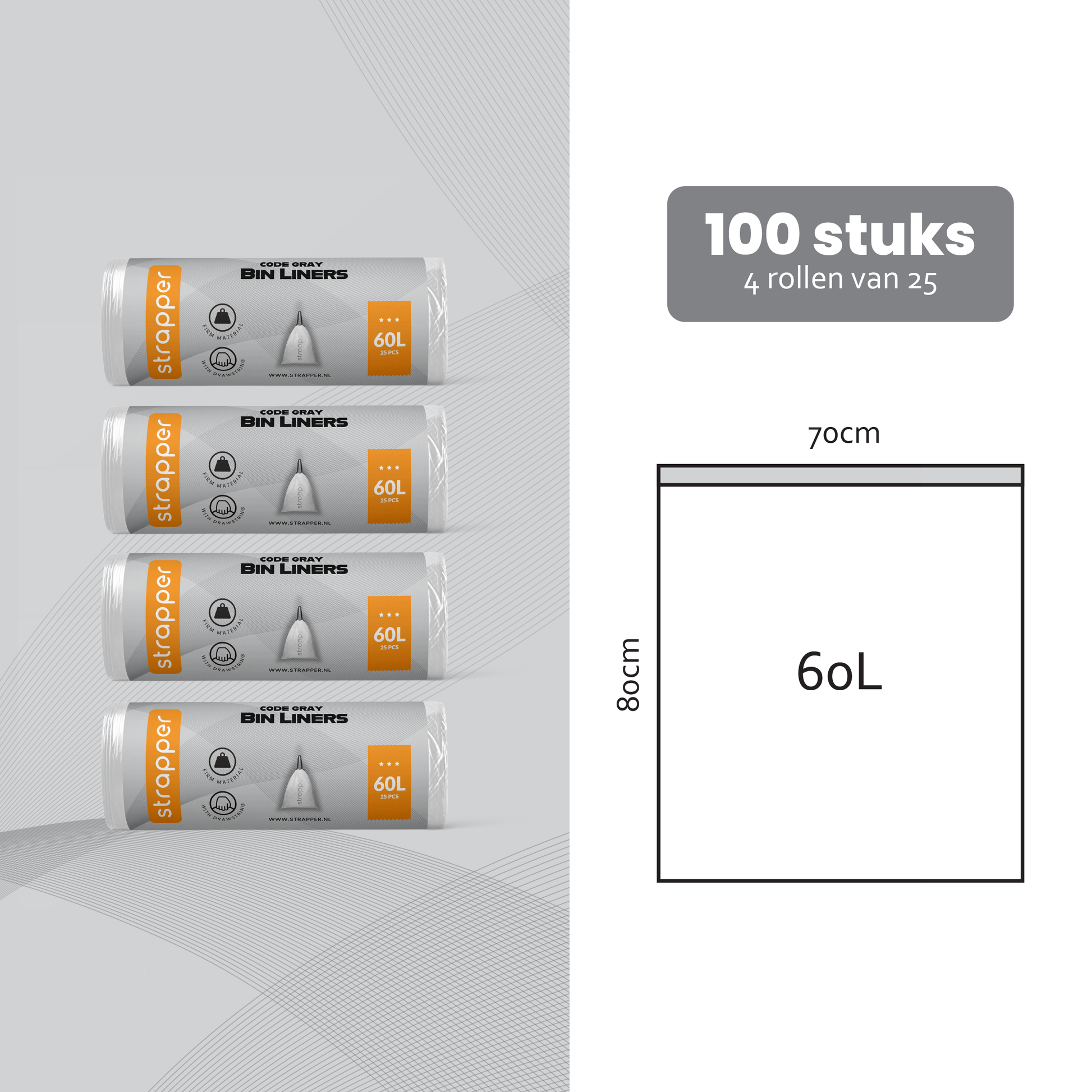 Strapper Müllbeutel Grau – Passend für Brabantia und Wesco (Swirl) – 60 Liter